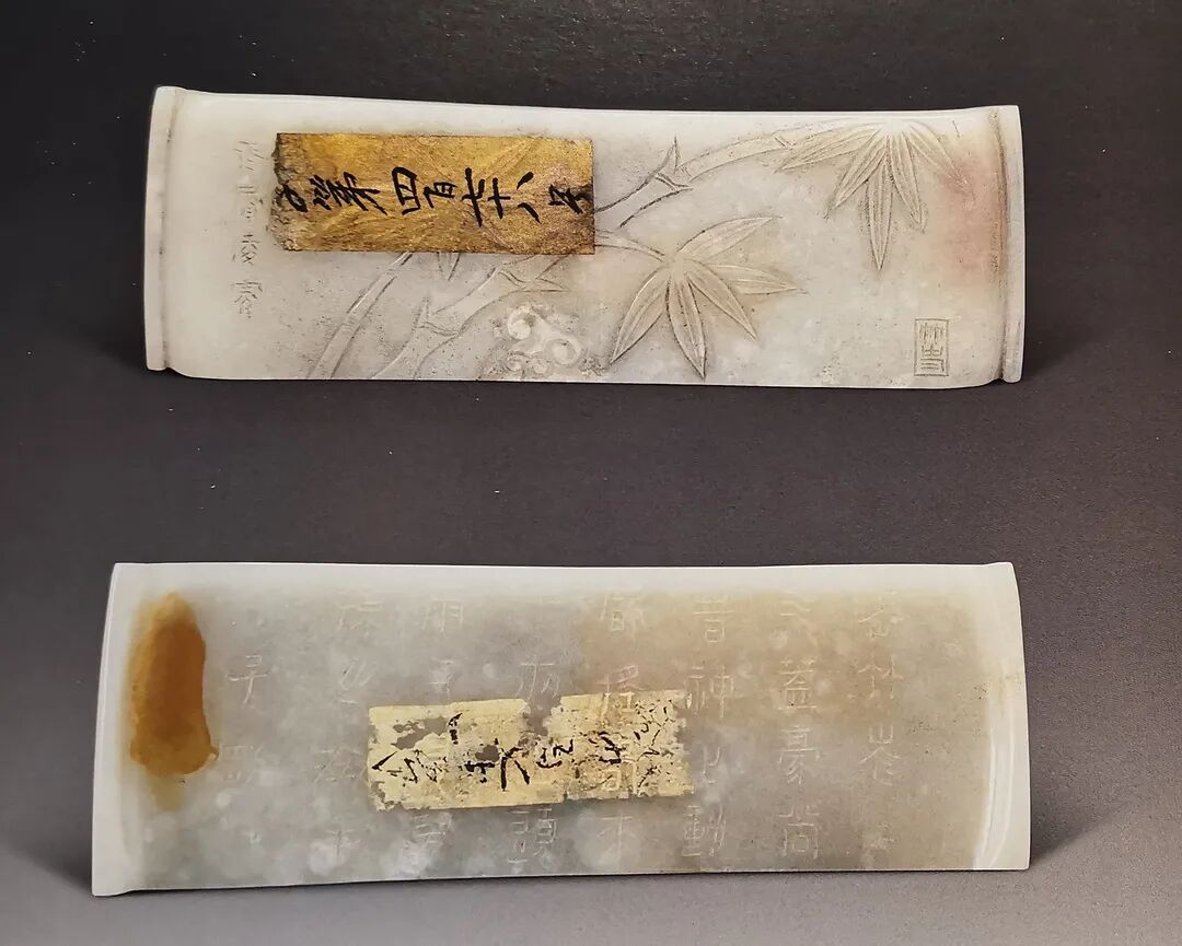 长14.7、宽4.9、厚0.4cm。刻有诗文及“子刚”款