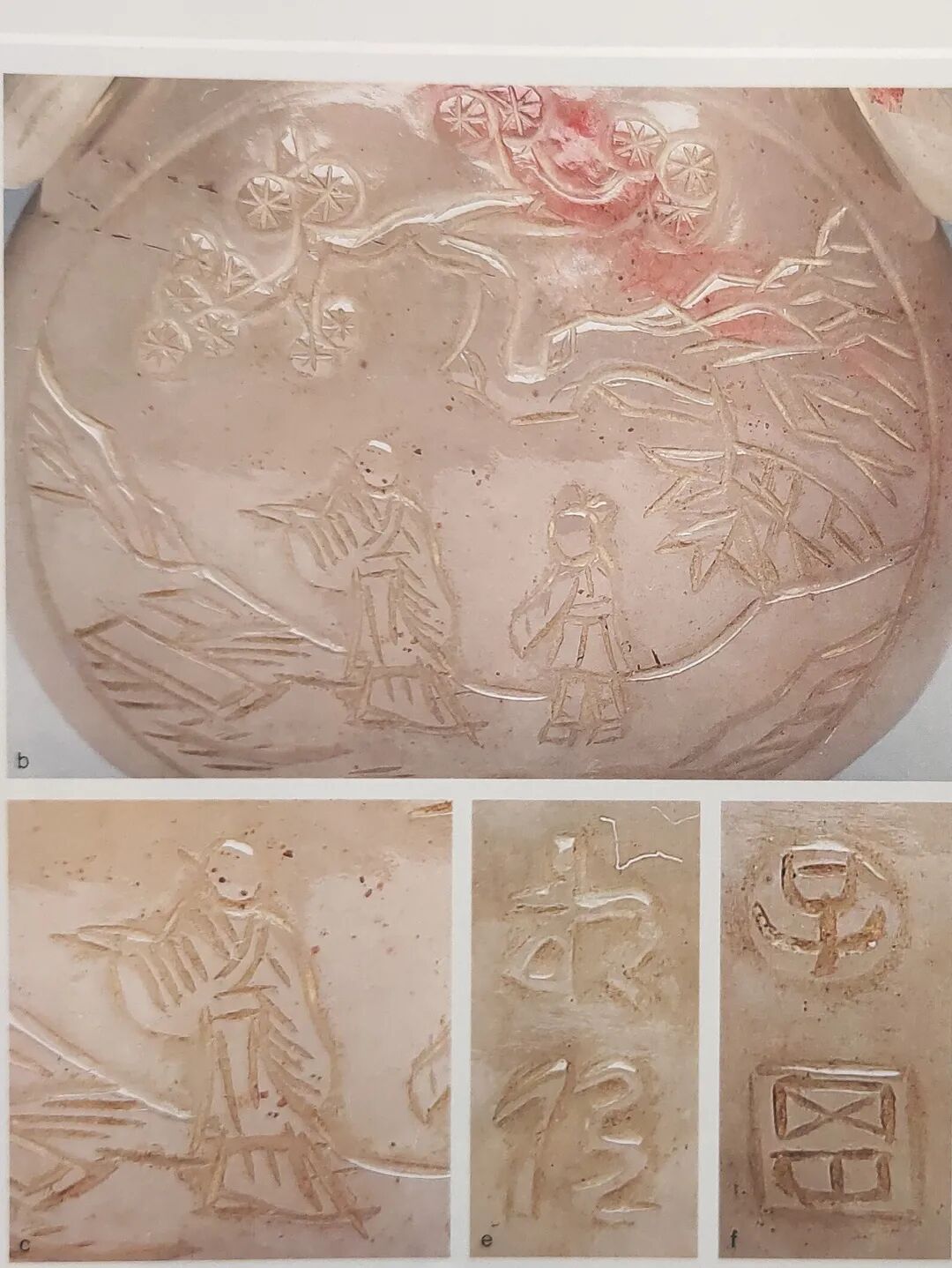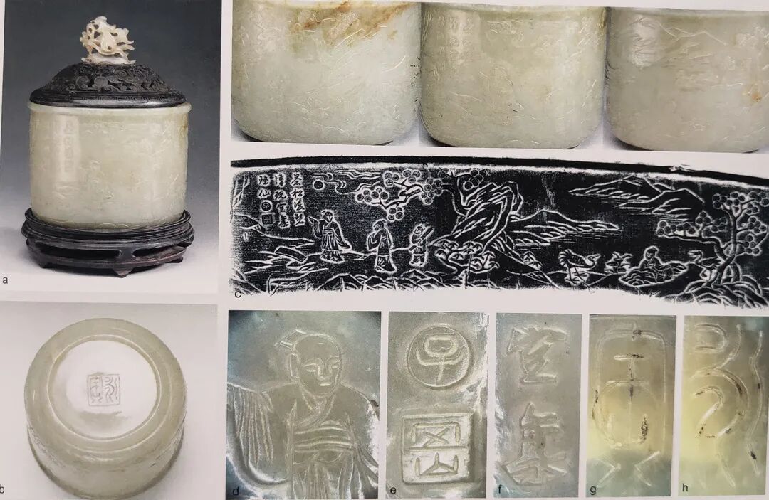 从上所见,器物上关于陆子刚的名字落款有两种写法,查证明清文献中就有“陆子刚”与“陆子冈”两种写法。故宫所藏刻有陆子刚款的玉器,即使是明代之物,风格也炯异。以器皿为多,有精工细作者,也有刻工粗率者。如此看来,陆子刚可能因当时名气过大,已出现了仿品,后来就被当成了一种品牌的象征,成为高档玉器的代名词,在明代就已有仿冒和盗用,这一现象一直延续到清甚至当今的玉雕业。