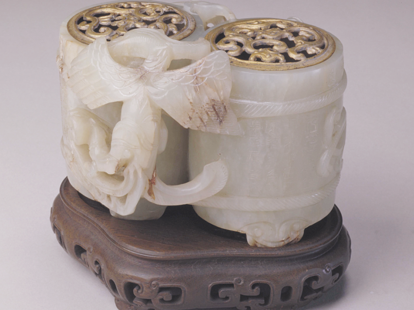 白玉“子刚”款合卺杯 明 清宫旧藏