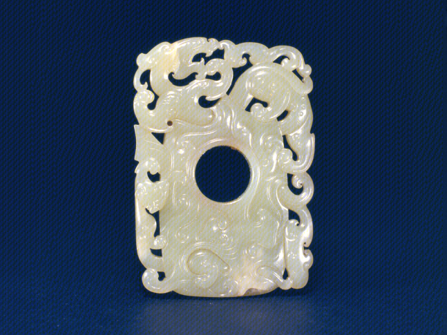 白玉螭纹花鸟子冈牌 明 故宫博物院