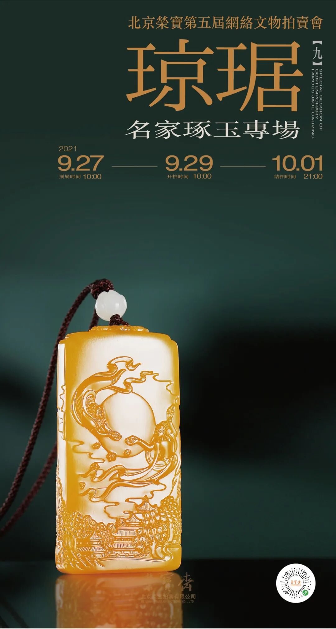 北京荣宝第五届网络文物拍卖会——琼琚·名家琢玉专场(第九期)将于9月27日10:00—9月29日10:00开启线上预展,并于9月29日10:00开拍,10月1日21:00结拍。