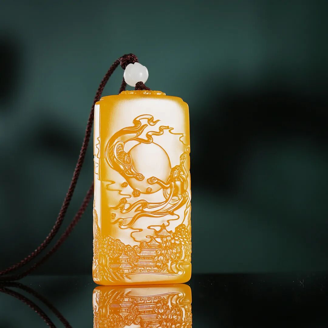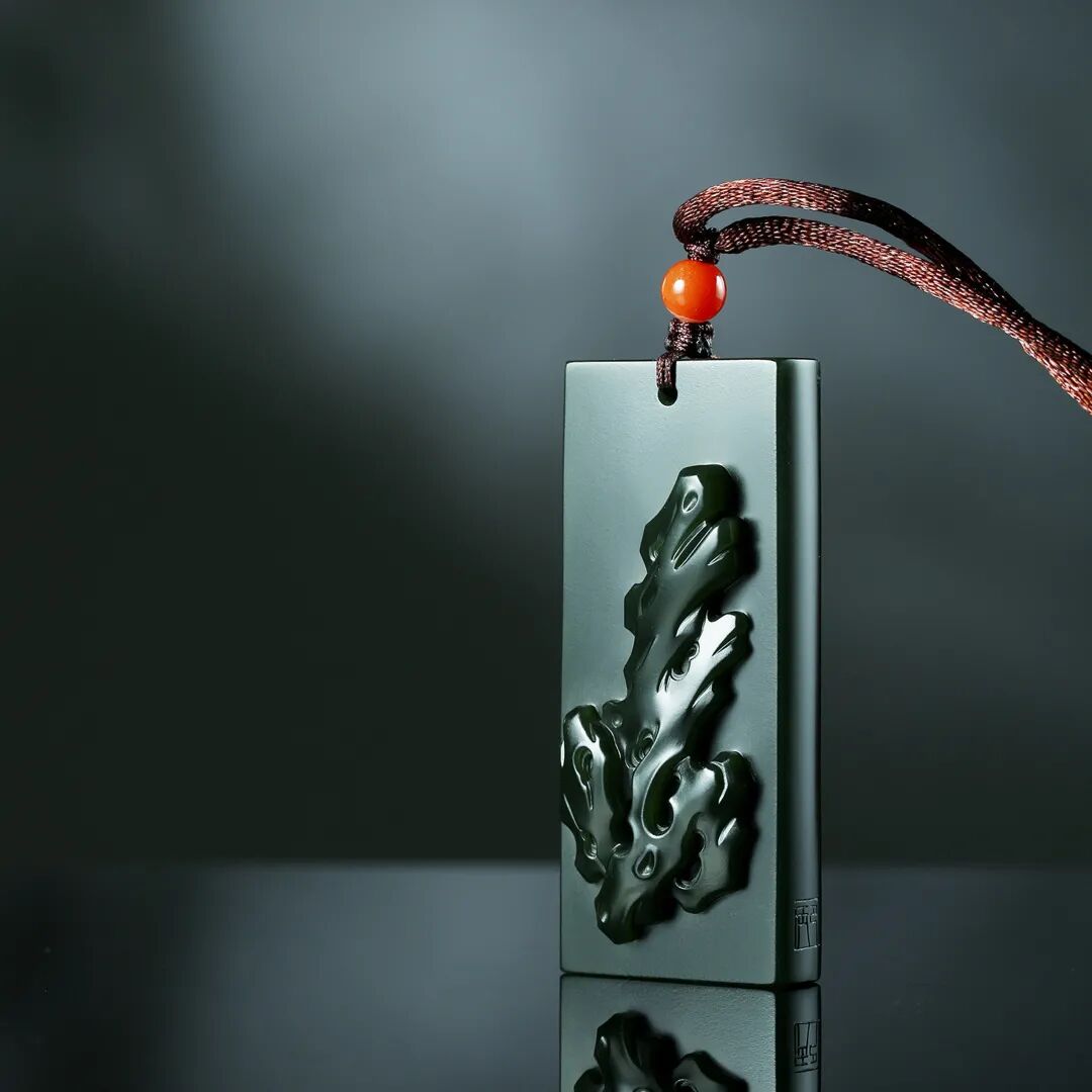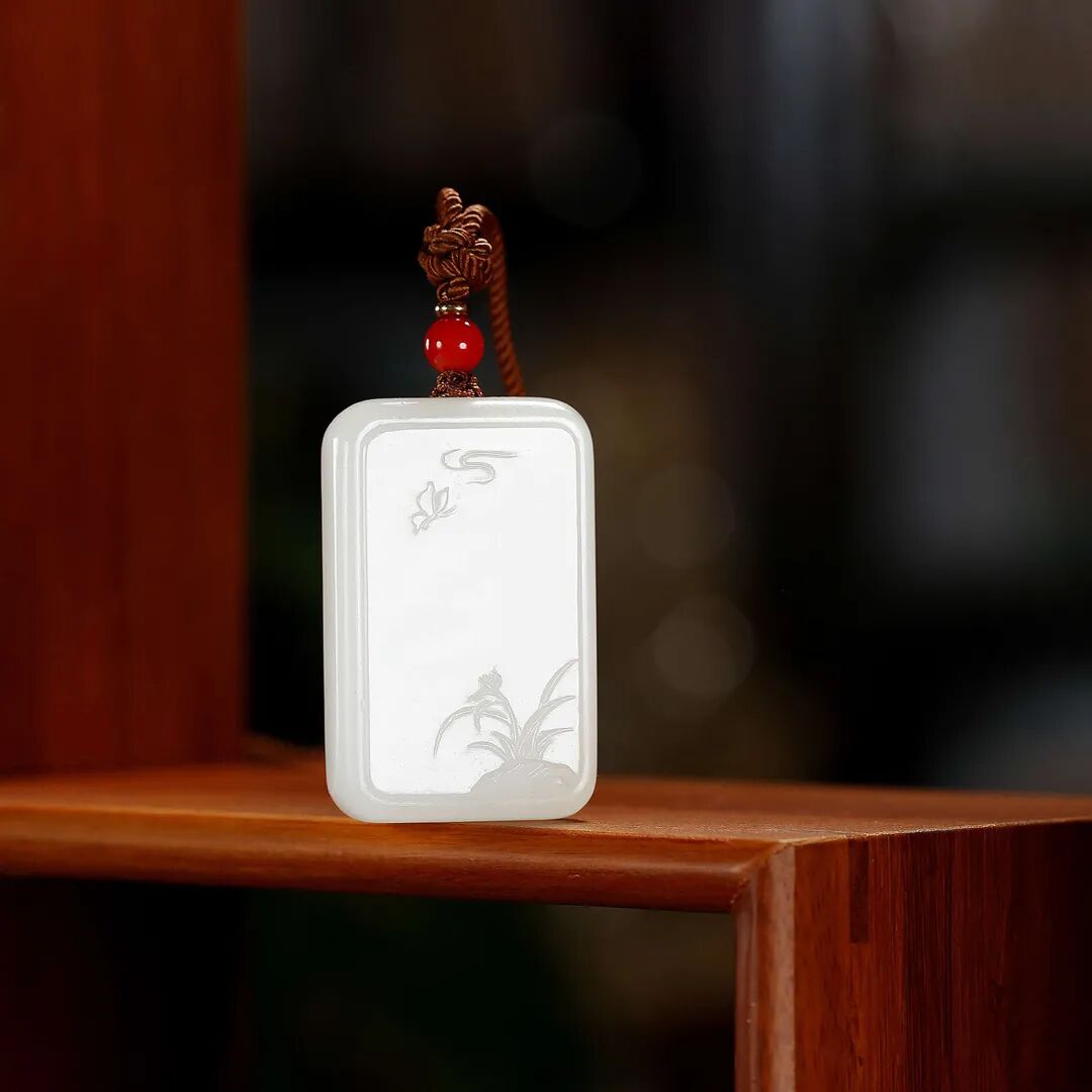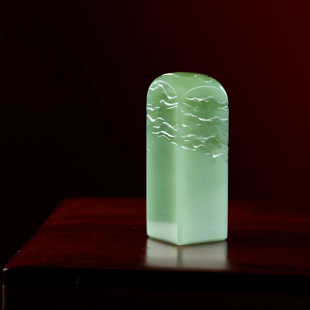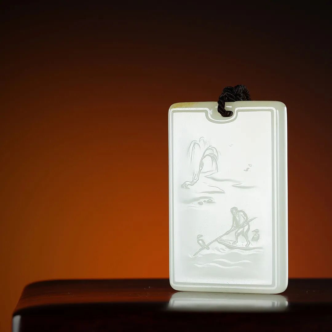 工巧苏郡 鸭蛋青碧玉竹影牌