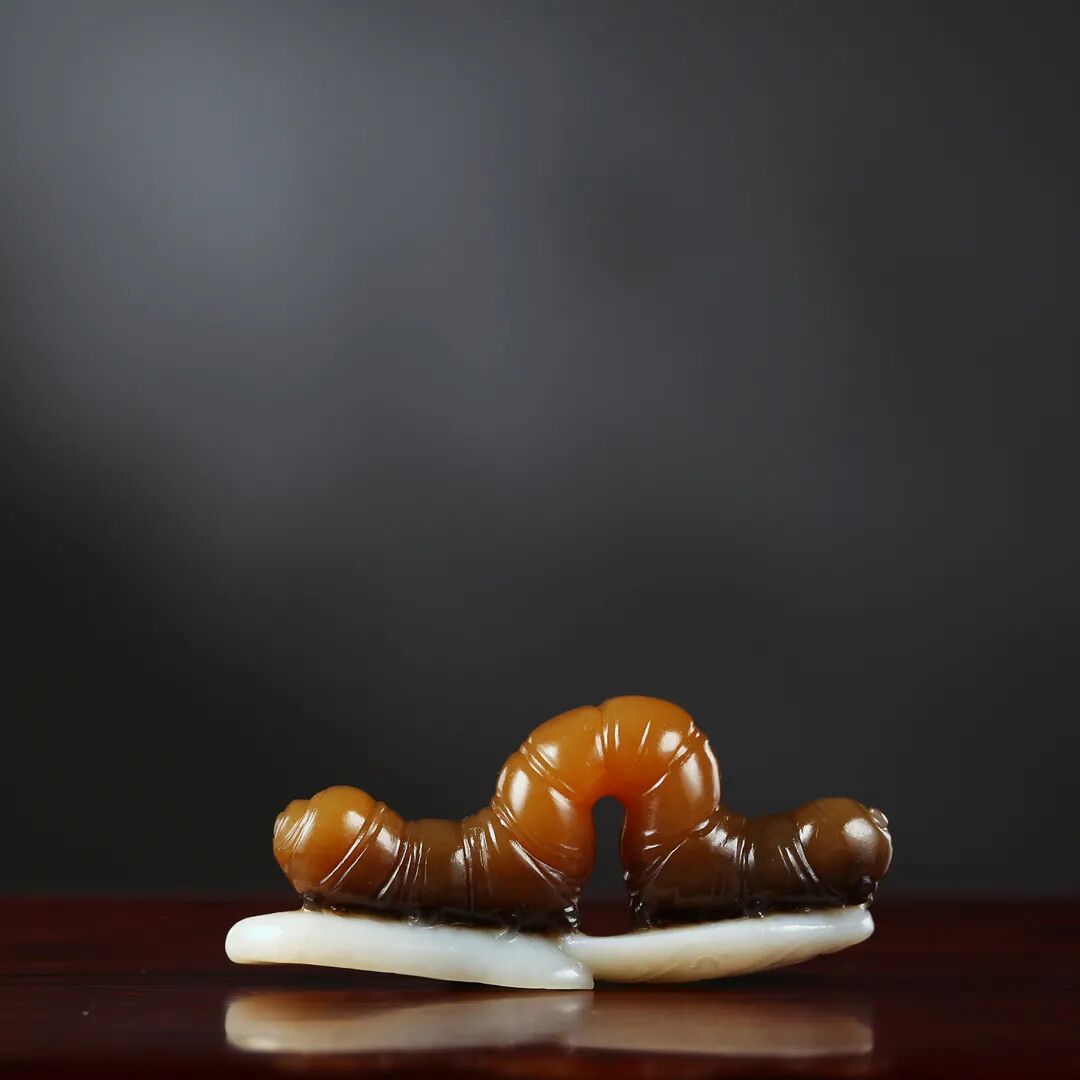 工巧苏郡 糖白玉俏雕春蚕雅玩