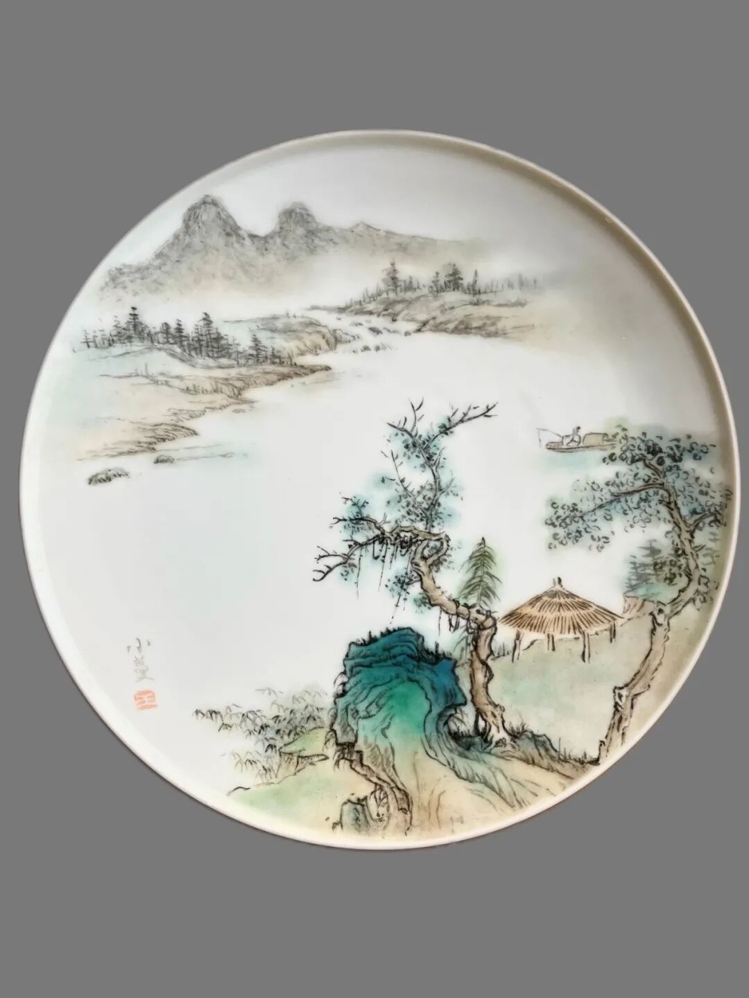 小蔓的山水瓷画应称文人瓷画,画面的留白呈现出瓷器的材质美,线条也好,自由而不拘谨,小蔓是懂线条的。精神也高级,那种文人以物寄情,表达文人追求天人合一的精神境界的意境表达得很美,自然而没有任何做作。画面完整,空间能力强!技巧也非常棒,各种皴擦、渲染恰到好处!小蔓是个比较纯粹的艺术家。干净、清澈、心性自由,把自己的精神与灵魂表现出来。认真不草率,虽然瓷画才开始, 底蕴已表露无疑。