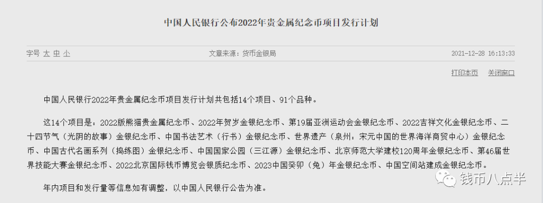 其中,2022年版熊猫金银币和贺岁金银币都已发行!