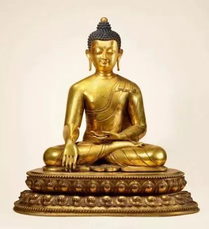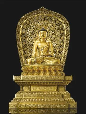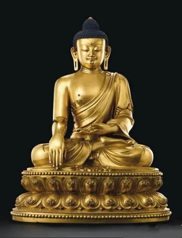 这件鎏金铜佛,采用历史佛陀释迦牟尼的身形,罩简素僧袍,右手持触地印。以释迦牟尼为题材的永乐佛像,在文献上算是较为罕见。而本件藏品是目前纪录中最大的一件永乐佛像,也是最贵佛像,成交价2.36亿!