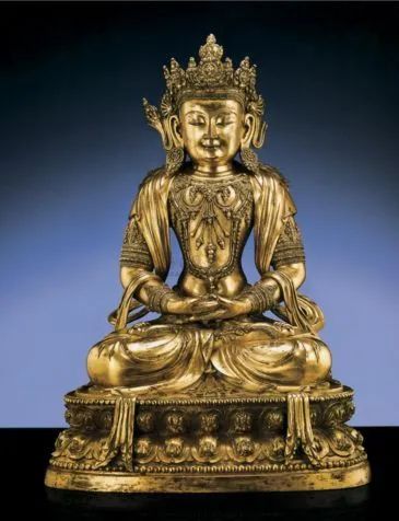 此尊无量寿佛坐像承永乐造像之风,装饰繁琐华丽,制作精美,身躯比例匀称,充分体现了宣德时期宫廷造像的特色。