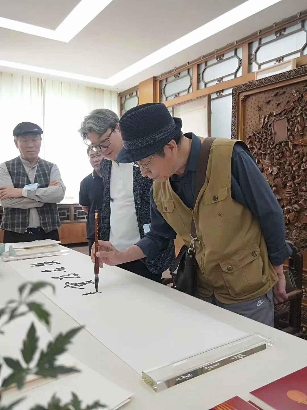 本次展览特别展出当代书画名家七十余件精品佳作,作品形式多样,内容丰富,以贺祖国生日绚彩华章!展览当天,郜宗远、程大利、谢志高夫人宋雅丽、李燕、郭玫孮、戴顺智、满维起、邢少臣、于水夫妇、李洋、王辅民、张馨、刘万鸣、崔景哲、朱赓博、郭华卫等众多书画名家云集荣宝斋,与荣宝斋领导赵东、范存刚、唐辉、李春林欢聚一堂,赏析品评,交流心得。多位书画家聊到兴致酣畅之际欣然留下墨宝以记之。