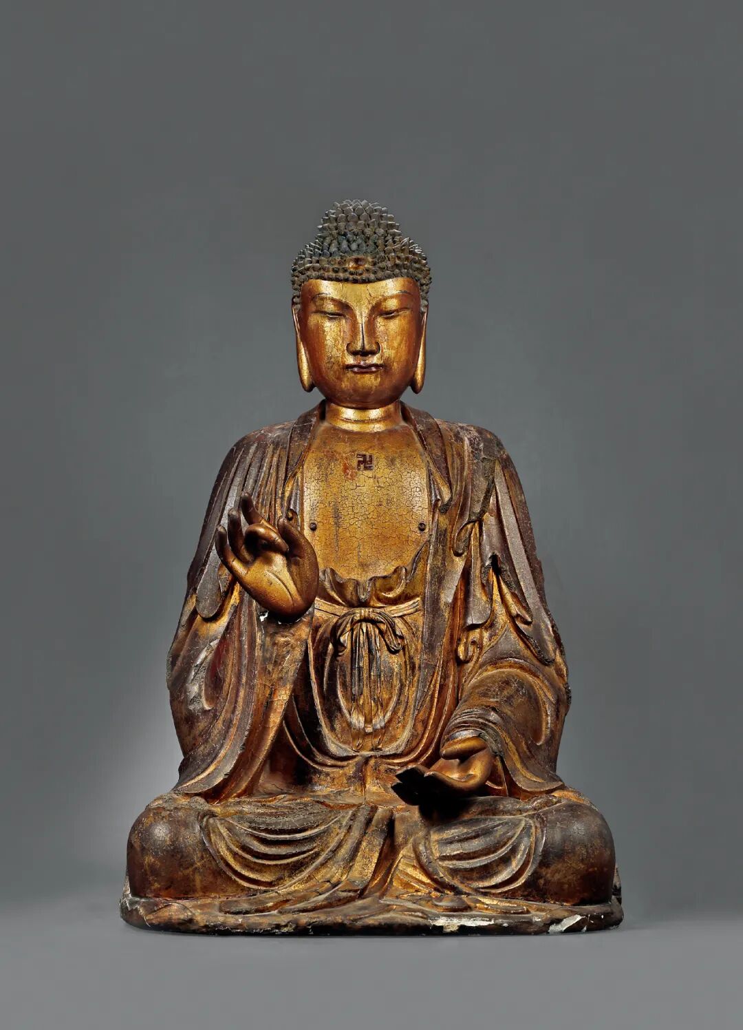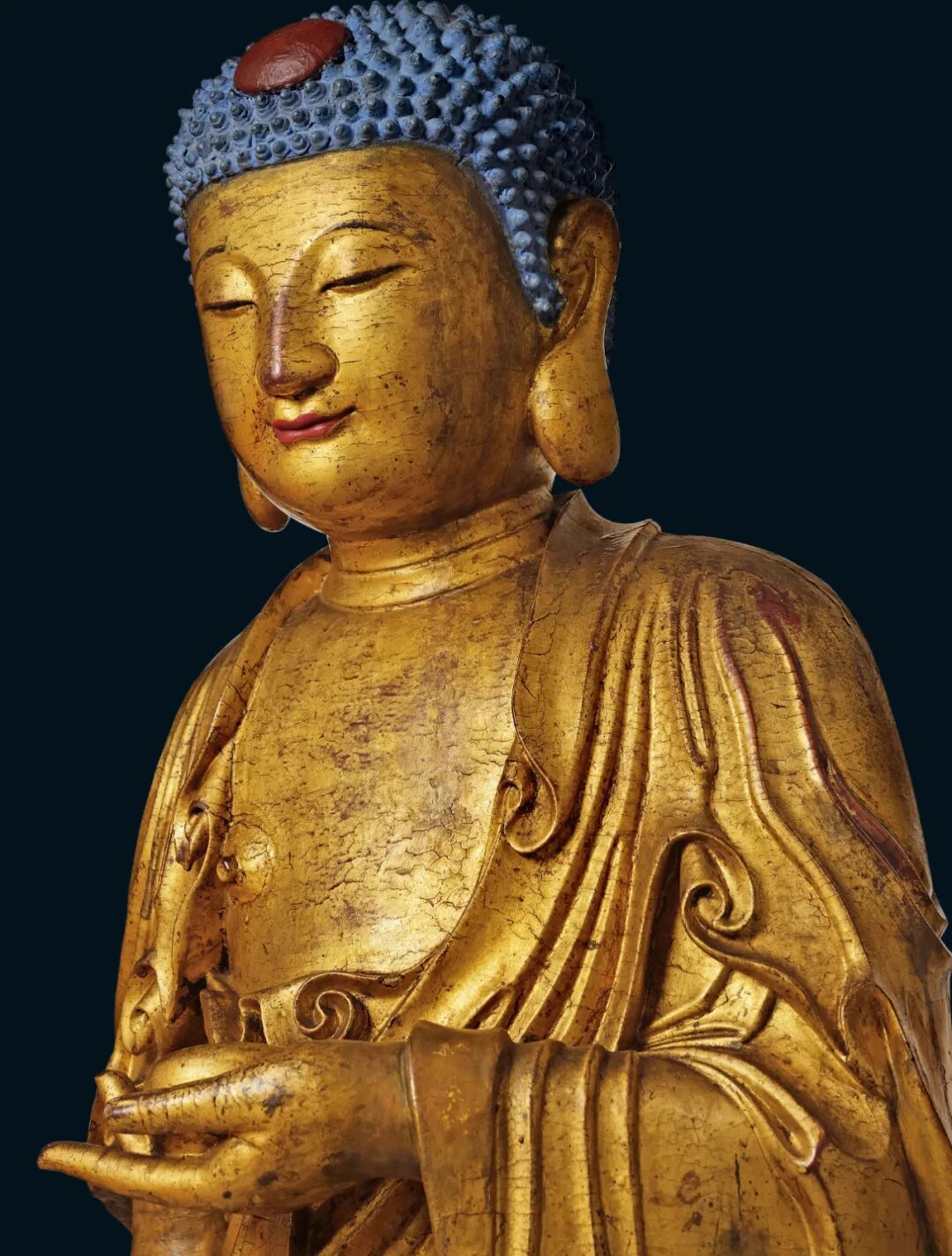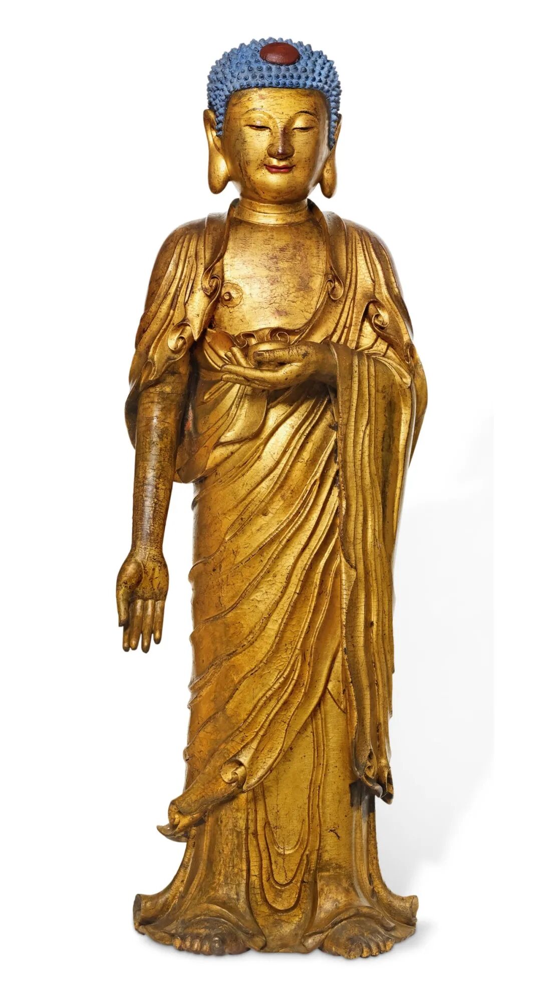 参阅:山中商会藏,明早期木雕金漆站姿佛陀。