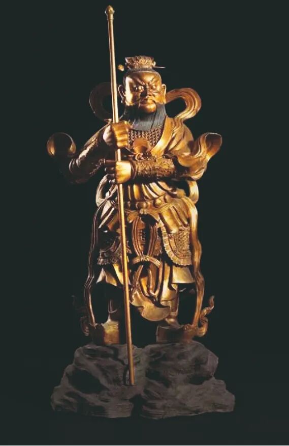 托塔天王是佛教中最为著名的护法神,尤以四大名著《西游记》中的形象广为流传。他原是印度佛教四大天王之一的北方多闻天王,传入中国之后受到中国文化和审美意识的影响而表现出了显着的中国文化特征。在中国四大天王形象中,唐代时镇守边关的大将李靖被认为是多闻天王的化现,宋元时期几乎将李靖与托塔天王合而为一了,而明清以后托塔李天王成为单独的天王造像被广泛供奉。