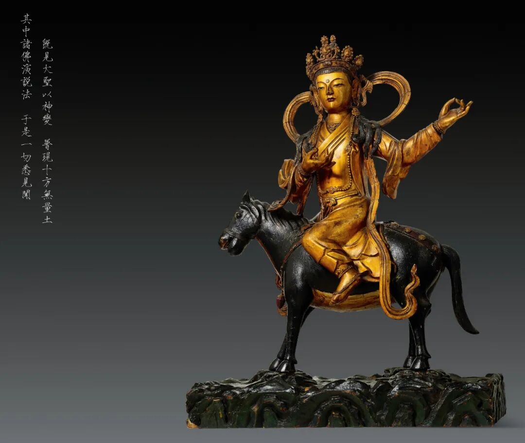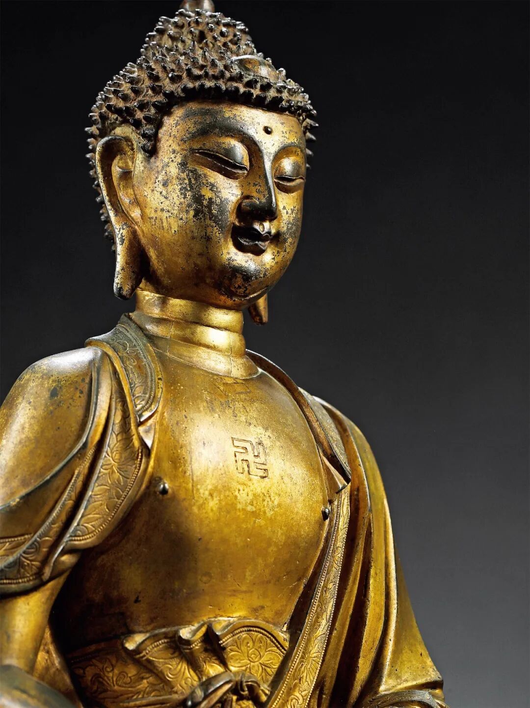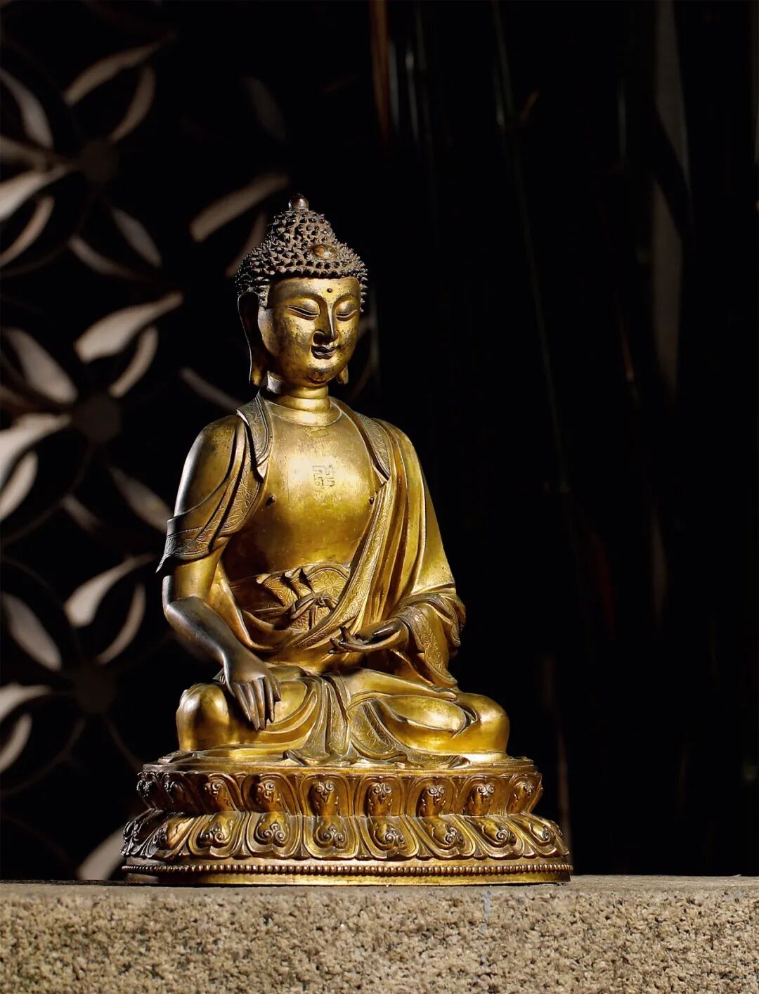 清宫崇佛之风盛行,康、雍、干三帝佛学造诣颇深,信仰弥笃,加之国运昌隆,宫中佛像之造作御制铜鎏金释迦牟尼佛造像,堪称清代宫廷造像中的一件旷世绝品。不计成本,工艺考究精益求精,其杰出的品质代表了清代宫廷造像的最高水准。此尊罕见清康熙宫廷新的风格。纵观中国宫廷佛教造像艺术之历史,清康熙宫廷造像有着承上启下的节点地位,材质奢华以此三朝为盛。清康熙一朝,开清代宫廷佛造像之先河,既承继明代造像特点,又开创了清代造像崭此尊释迦牟尼佛右手下垂施触地印,左手结禅定印,再现了2500多年前佛陀战胜魔罗证得佛果的上的右手,以食指触碰大地,并说:与脱离轮回获得最后的解脱,魔罗提出了质疑。于此觉悟的关键时刻,禅定坐姿的释迦牟尼佛移动膝为所动。