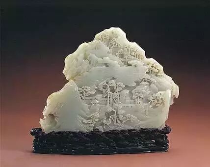 山子青玉质,作重叠山峦形,山岩间琢棵棵巨松挺立。山子正面飘浮于山腰的云纹上,琢隶书御题《万松山房诗》。清代玉山较多,图饰多取自然景色,如仙人游、文友聚会山林、松下鹿鹤、山水楼阁等等,且碾琢精致,画意盎然。陈设于文房中,读书小憩时观之娱目赏心。