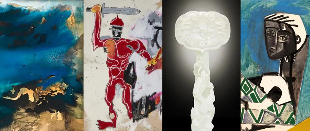 估价:HKD 7000万- 1亿当代艺术版块由巴斯基亚1982年杰作《无题(红战士)》领衔,巴斯基亚在今年可谓是赚足了噱头,《战士》《无题》均过亿成交,相信此幅也必定有不朽战绩!本专场另有奈良美智、罗伊李奇登斯坦、张晓刚等拍场热门大咖助阵,值得期待!书画版块也是亮点颇多,本季共推出逾200件精品,总估价逾2亿港币,张大千是每年苏富比大拍书画版块必不可少的重头戏,本季秋拍也为我们呈现了一幅大千晚年泼彩山水巨制《春云晓霭》,此作乃张大千创作高峰时期代表作,一直为画家珍藏,屡经展览著录。古代书画版块也是不容小觑,以蓝瑛《江山千里图》手卷领衔,其气势壮观,尤为瞩目。书法则汇集了多件明人作品,如文嘉及文彭两兄弟的书法手卷,另有传为宋拓本的《史晨前后碑》,属市场罕见。同时本专场还汇聚徐渭、八大山人、龚贤、吴历等明清大师经典作品,多个私人珍藏专辑也将亮相,喜欢书画的藏友可千万不要错过!在今年四月春拍的时候,香港苏富比乾隆帝御宝交龙钮白玉「纪恩堂」玺,以1.46亿港元成交,刷新众人视线。本季秋拍玉器版块也为我们呈现一件清乾隆 御制白玉赶珠云龙纹题诗如意,估价6000万-1亿港币,属实珍贵!让我们共同期待这件美玉的最终成交!瓷器版块也精彩颇多,本季秋拍专场欣呈庄贵仑旧藏御瓷选萃,香港实业家庄贵仑,昔为敏求精舍会员,好藏善鉴,其中陶瓷、珐琅尤为出色。另有艺德堂藏康熙、雍正、乾隆三代御瓷选萃,展现盛清景德镇窑的登峰造极。明清佳瓷亮眼,实属爱瓷人士不能错过的精品专场!除上述精品之外,本季苏富比秋拍最值得期待的一大事件就是与电影界大佬王家卫的联袂合作,将以三重钜献之形式亮相秋拍,王导分别以艺术家、收藏家以及策展人身份,与苏富比成就此次史无前例的跨界合作,值得期待!本年度嘉德香港秋拍也是诚意满满,为我们带来了一系列精彩重磅,其中亚洲二十世纪及当代艺术版块尤为值得关注的是「东方美学」专题,由吴大羽珍稀大尺寸巅峰之作《花韵》领衔,更有吴冠中大佬无双之作助阵:其一为曾于1989年作为「首件登上吴冠中油画拍卖市场」,饱含人生情味、创作黄金时期的《新居》;其二为首现拍场、出版众多,画题珍罕,别具浪漫情怀、毕生仅有十件瓶花主题之一的本次封面之作——《丁香》。此外,还有赵无极大师首件双联作《23.09.76》震撼亮相,可以说是精彩爆棚!古代书画版块一直以来势头强劲,本季香港秋拍嘉德为我们隆重呈献近百件明清书画:著录于《石渠宝笈初编》的董其昌《临诸家帖册》,将领衔中国古代书画专场,此册共十开,以“朝鲜笺”临颜、苏、黄、米、蔡诸家帖。书艺高超,不可错过!此外,王原祁《春山数峰青》也为古代书画精品,为画家六十五岁时精能之作。长题中,既有对自己四十年画学生涯的回溯,又有“起而振兴绝业”之志,可见虽于笔墨一道,仍壮心不已。本作经李葆恂、王季迁鉴藏。近现代书画为我们呈现300余件佳构,张大千、齐白石、黄宾虹等巨匠强势助阵,将隆重呈现张大千金笺泼彩《春雪初溶》,这件拍品为大千晚年侨居美国加州环荜庵时所潜心创制,融贯中西,实属精妙!更有黄宾虹《黄山云舫图》精品山水佳构,精彩不容错过!