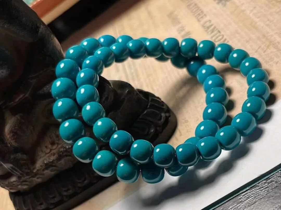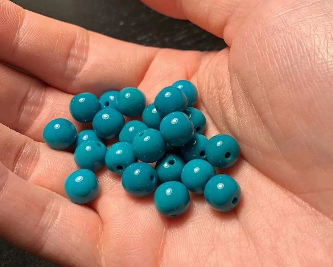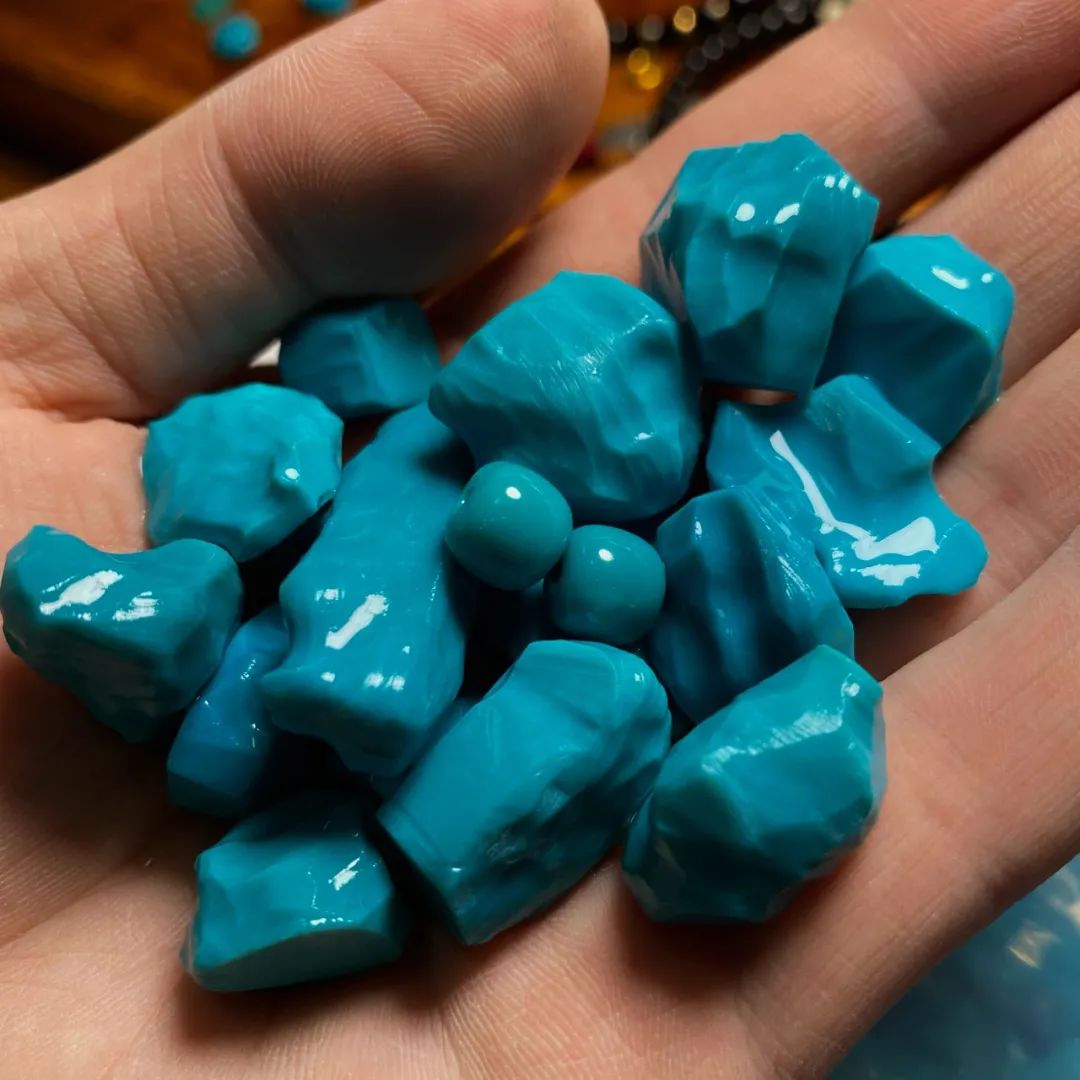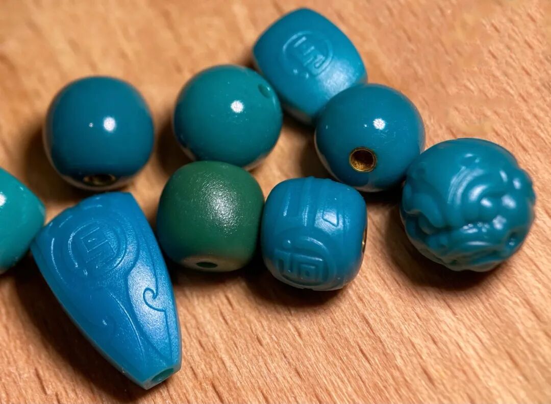 料质细腻、瓷度高,这样的绿松石,玩出来的效果就很好。按照我们行话来说,就是“碴子细”,俗称“果冻料”!“果冻料”不但适合雕刻、上细工,而且变色快、颜色均匀,是最适合盘玩的绿松石。![]()