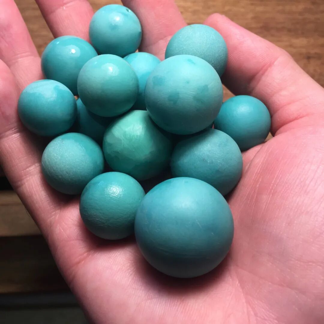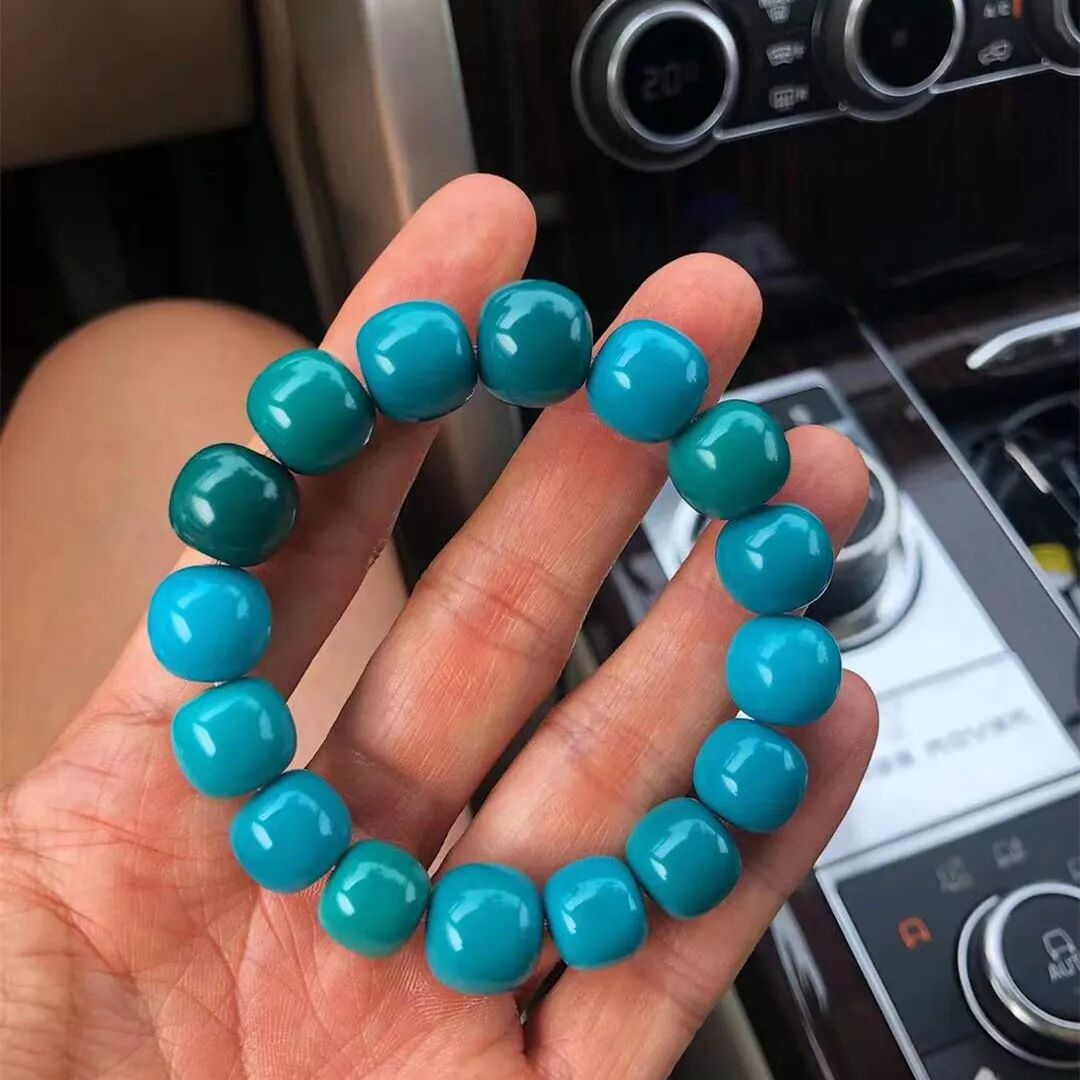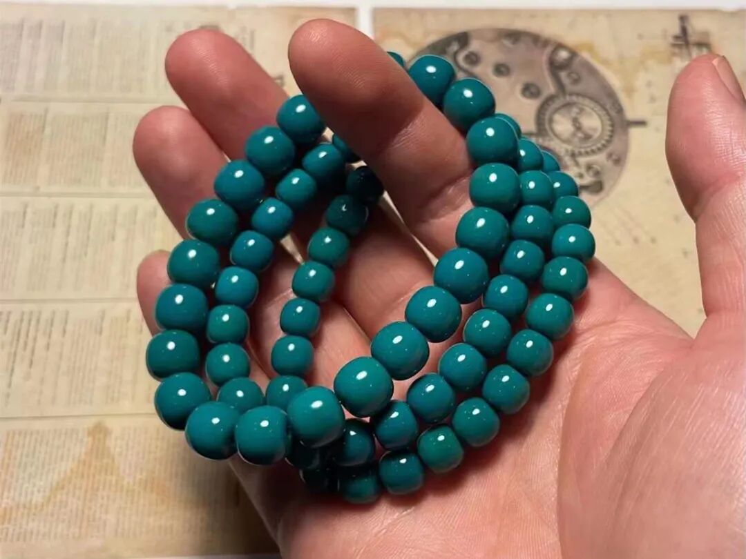 料质细腻、瓷度高,这样的绿松石,玩出来的效果就很好。按照我们行话来说,就是“碴子细”,俗称“果冻料”!“果冻料”不但适合雕刻、上细工,而且变色快、颜色均匀,是最适合盘玩的绿松石。![]()