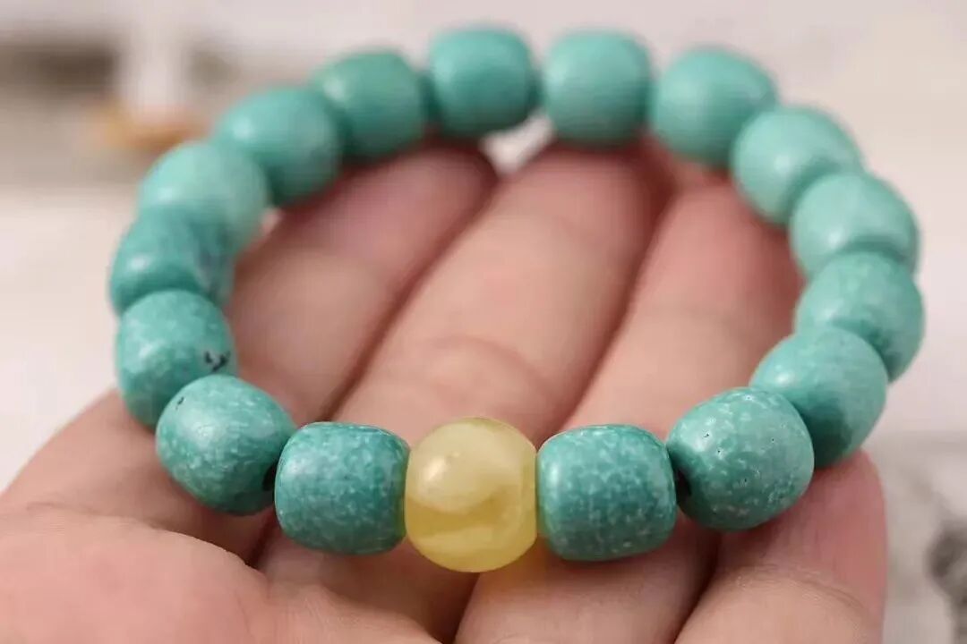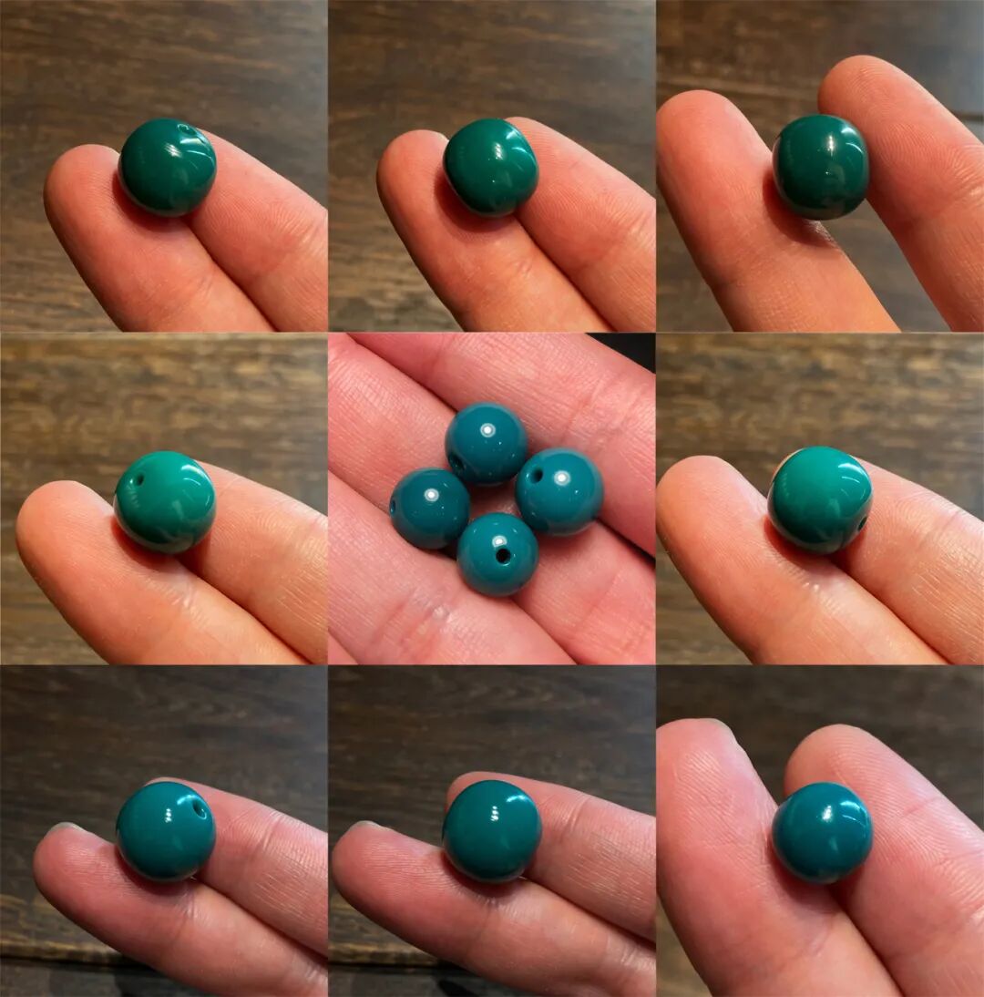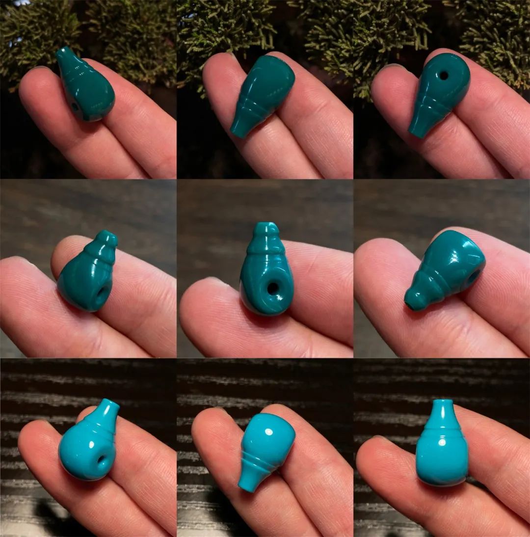 果冻料绿松石,即便随便盘盘,也能变色均匀、玉化透亮。而那些瓷度高,但料质不细腻的绿松石,即便悉心盘玩,依然还会变花、反白点。