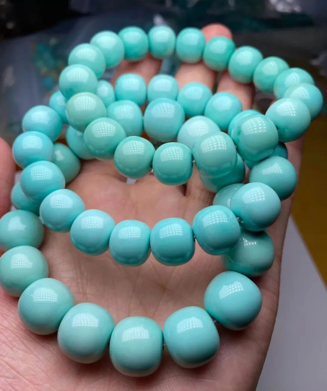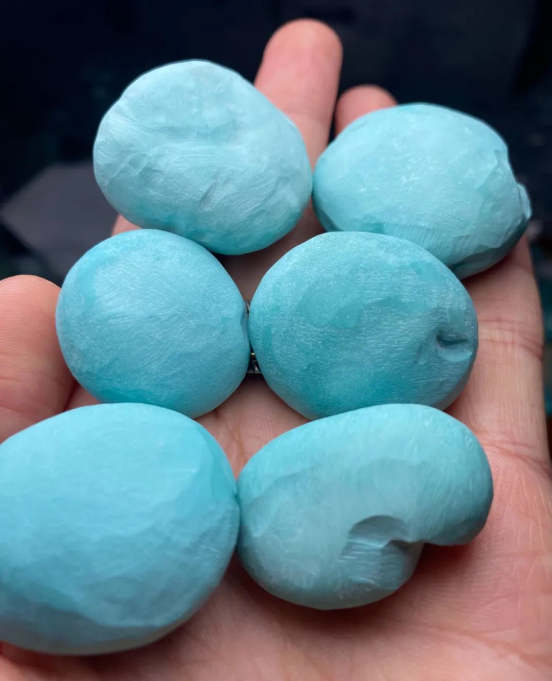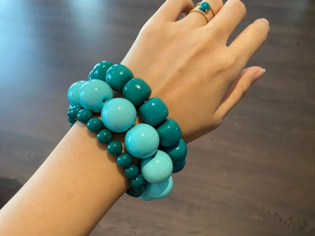 果冻料绿松石,即便随便盘盘,也能变色均匀、玉化透亮。而那些瓷度高,但料质不细腻的绿松石,即便悉心盘玩,依然还会变花、反白点。