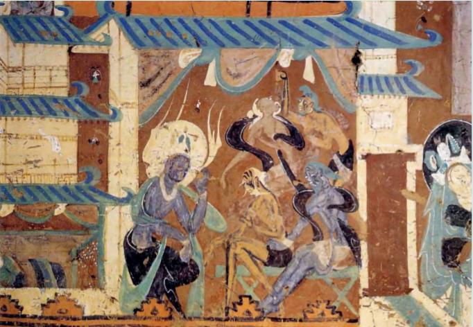 交椅,是垂足而坐的标志,是由汉代的胡床,隋唐时期的“逍遥座”逐渐演变而来的。宋人高承在《事务纪原》中引《风俗通》载:“汉灵帝好胡服,景师作胡床,瓷盖其始也,今交椅是也。”由此可见,交椅起源于早期的坐具:胡床。据文献记载,“交椅”这个名词首先出现于宋代,其部分造型取自于胡床的原始形貌;结构上包含了椅子的特性,具有靠背或扶手;功能上也不断完善,可供人倚靠。胡床由此演变为交椅,并不断走向成熟。敦煌《北魏257窟西壁须摩提女请佛故事》之二