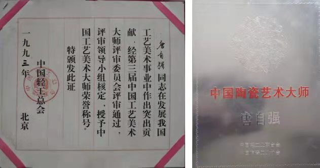 他因此成为景德镇雕塑瓷领域第一位至今也是仅有的一位拥有双国大师称号的艺术家。