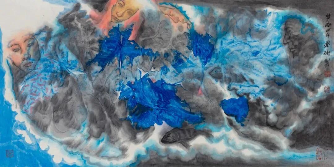 在他的《梦海》系列中,通过惠安女表现了人与海关系的生命主题,这是他的新作品。其色彩在原有特色的基础上,语言又有新的突破。