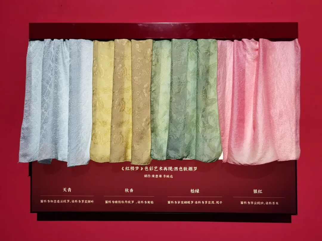 当前在广州图书馆北八楼的“红楼制造——从《红楼梦》故事到传统工艺”展览中的相关展品,正是黄惠雄、李映达老师利用文献所记载的染织方法,用现代的材料,将《红楼梦》中写到的色彩艺术再现。