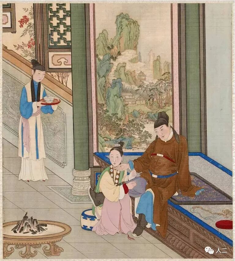 炭火微醺中,一盆香木带来满室馨香。屋子里的气韵让人沉醉,男主人也正把盏归来,细看娘子,脸庞被炭火熏得愈发娇羞了。相公且慢下榻,至少让我帮你把靴子给脱了;也请让丫鬟给你上一杯香茗,解解酒。