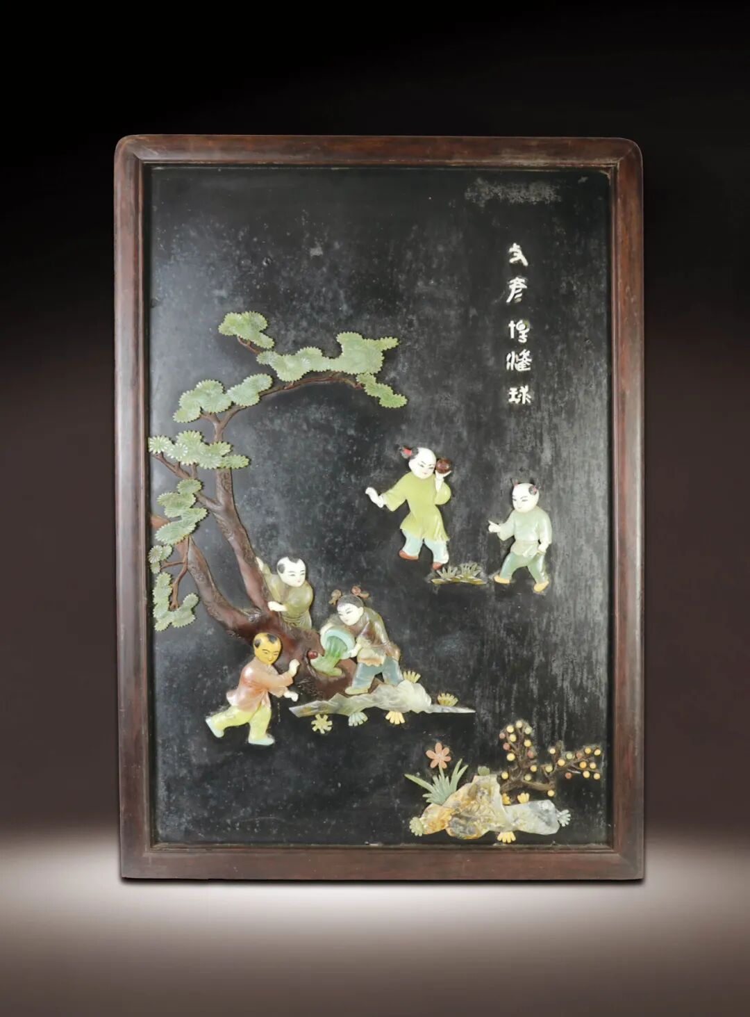 622 酸枝木鑲八寶嬰戲圖掛屏