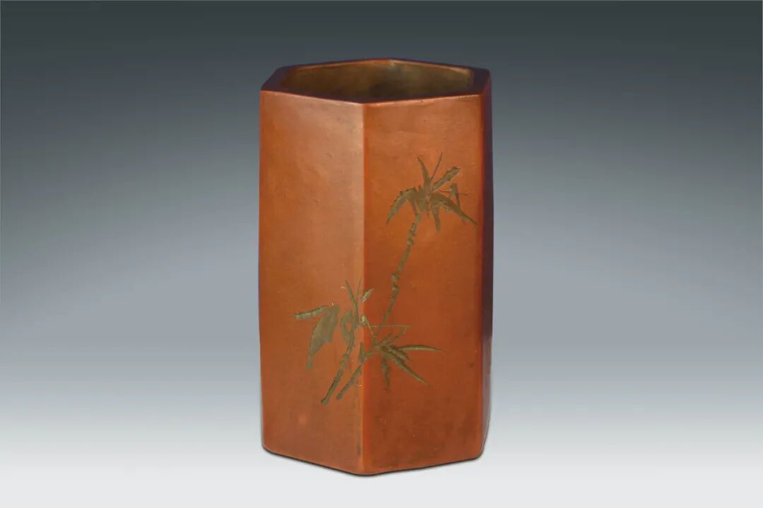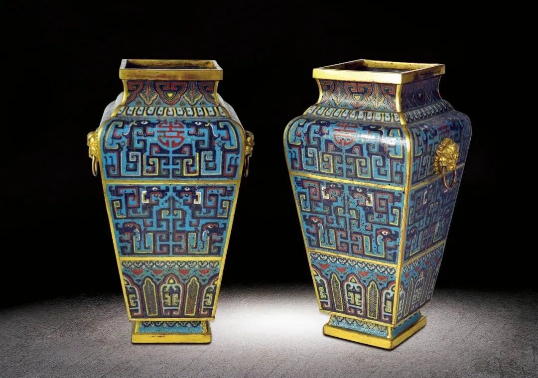 646 清 銅鎏金琺瑯雙獸耳四方瓶一對