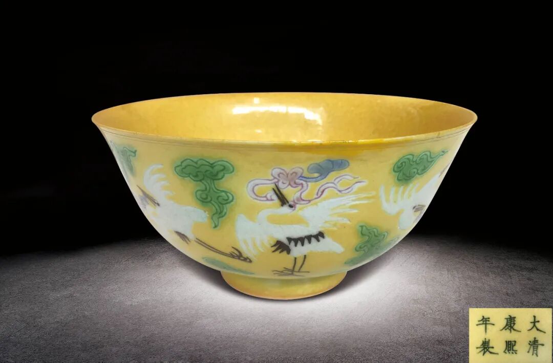 491 清康熙 黃釉素之彩雲鶴紋碗