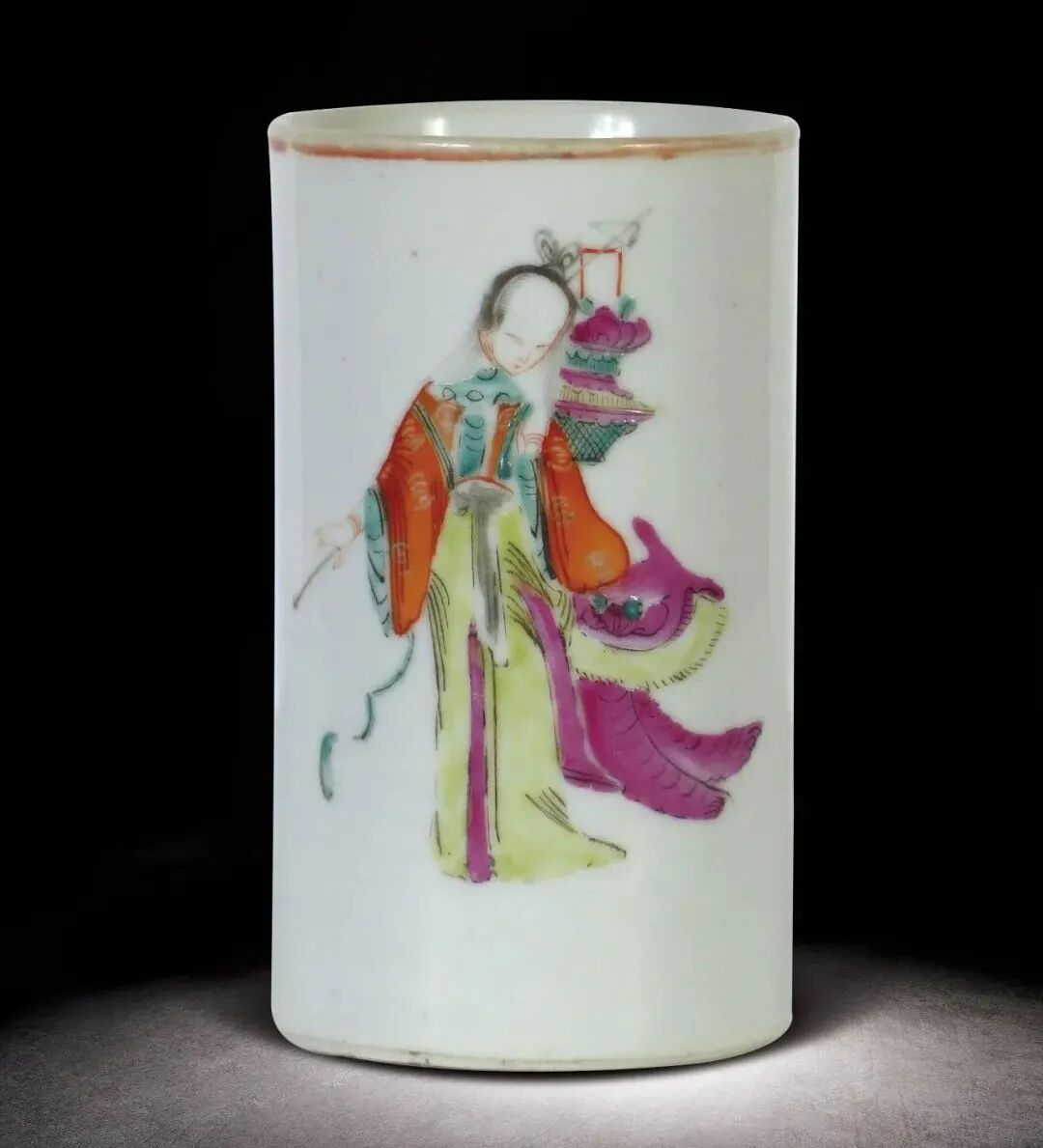 499 民國 唐子禎繪粉彩和合二仙紋筆筒