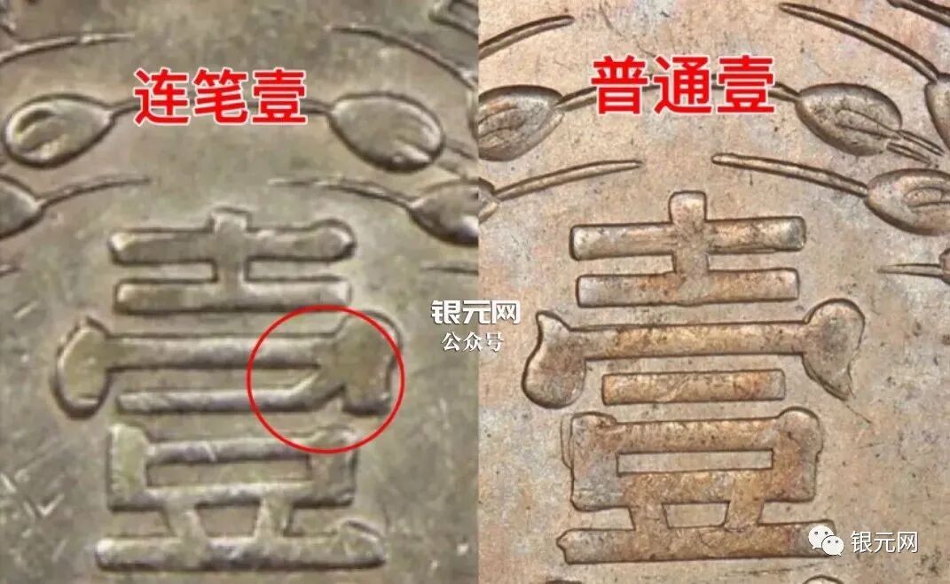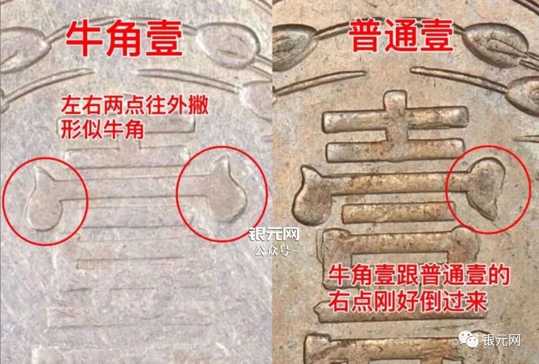 这一版特征是“壹”字宝盖左右两点往外撇,形似牛角,牛角壹与普通版“壹”字右点刚好倒过来,大家对比图片。