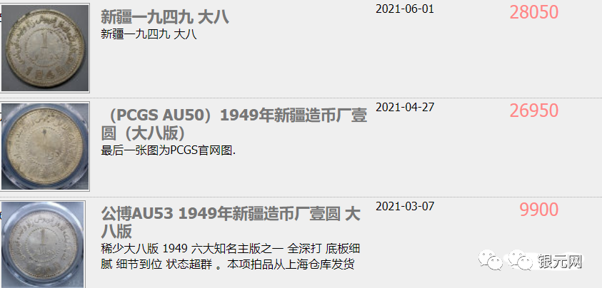 新疆“1949”银币是收藏的一个热门品种,版别细分的话至少不下数十种,今天就给大家分享以上六个比较稀少的版别,感谢大家关注银元网。