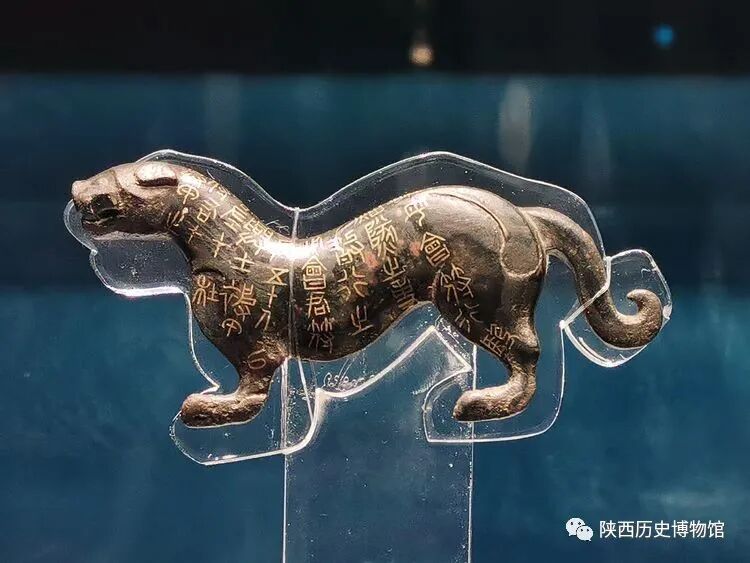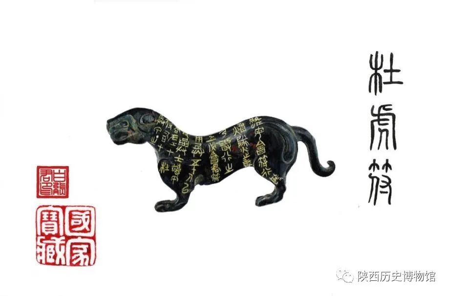 1975年出土的杜虎符,保存完整、造型生动,做工精美。虎身上还装饰有九行四十字的错金铭文,记录了秦国的用兵制度。杜虎符是我国迄今为止发现的最早的兵符,也是现存最精美、传神的虎符文物。![]()