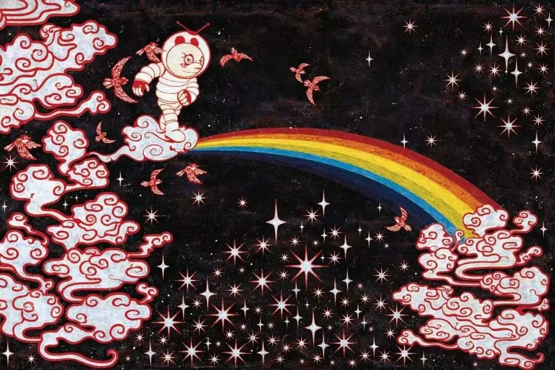 “会唱歌的星星”这一系列作品中,小熊猫化身为宇航员,驾驶飞船游弋于由行星,恒星,月球所构成的银河当中。艺术家用想象力编制出一个介乎于现实与幻想,过去与未来,残酷与浪漫的世界。