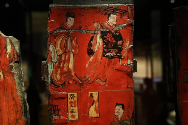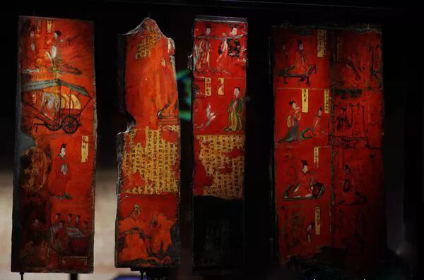 当考古队员在对石家寨村司马金龙墓进行发掘时,意外的发现了一组木制漆屏风。这是一组人物故事彩绘描漆屏风,每块木板高81.5厘米,宽20.5厘米,出土时共有5块。屏风上绘有多幅人物故事画,线条清晰,这一漆屏既是魏晋时期漆器珍品,又是北魏绘画史上不可多得的佳作。