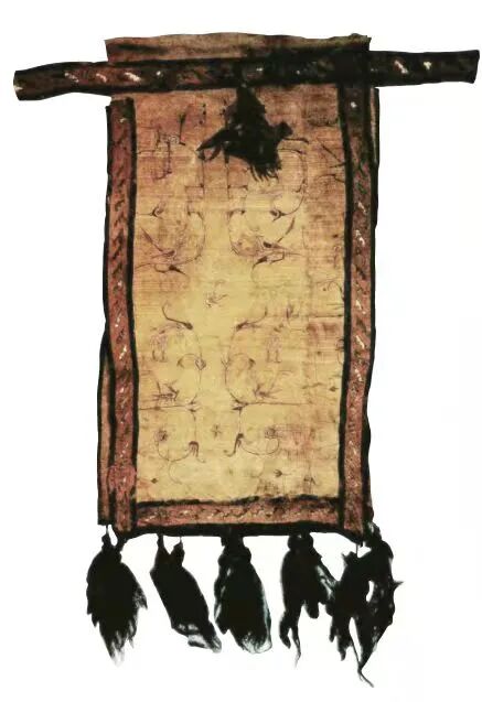 俄罗斯戈诺阿尔泰巴泽雷克墓地出土的毡毯上装饰有行走的狮子、带翼格里芬、披斗篷的骑士谒见女神等具有波斯文化特色的图案,其中2号冢墓中出土的箜篌也应是受波斯文化影响的产物。1号冢墓出土的第十套马笼头上的木雕人面留有向后背的卷发和浓密的胡须,与希腊人的面貌特征颇为一致。5 号冢墓出土的马鞍布上有来自中国内地的凤鸟纹织锦(图16),6号冢墓出土有中原地区生产的山字纹铜镜(图17)。这些物品再次证明了西方文化东传和中国丝绸、铜镜等西传过程中,黄金草原的游牧人所起的重要的桥梁和媒介作用。尤其是中国丝绸、铜镜、漆器等在欧亚草原的出土成为草原丝绸之路形成的标志。
