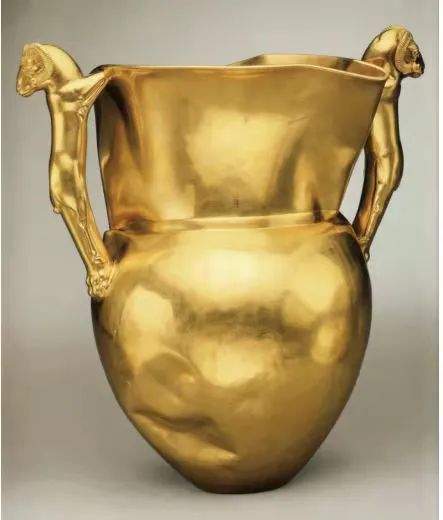 金罐罐体为双层,高颈,带有两个中空的欧洲盘羊形耳。每只耳上的盘羊头朝后,前肢弯曲,后肢向后伸直。耳的末端为狮子爪。这种金罐是阿契美尼德王朝的制品。