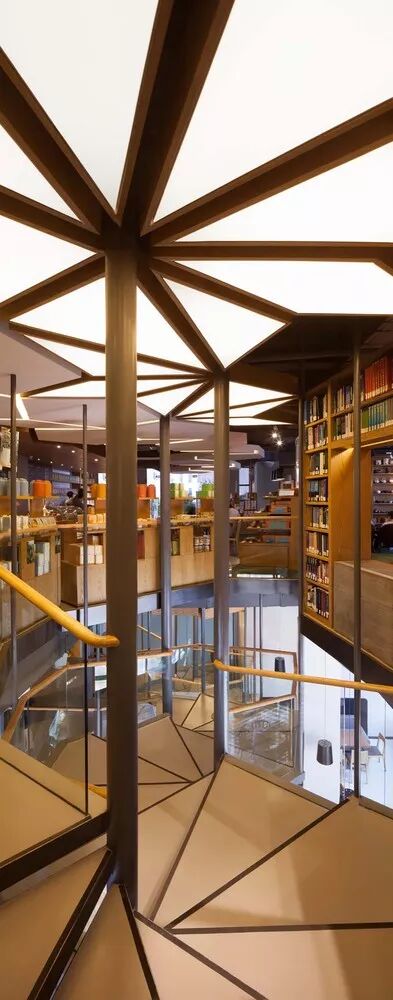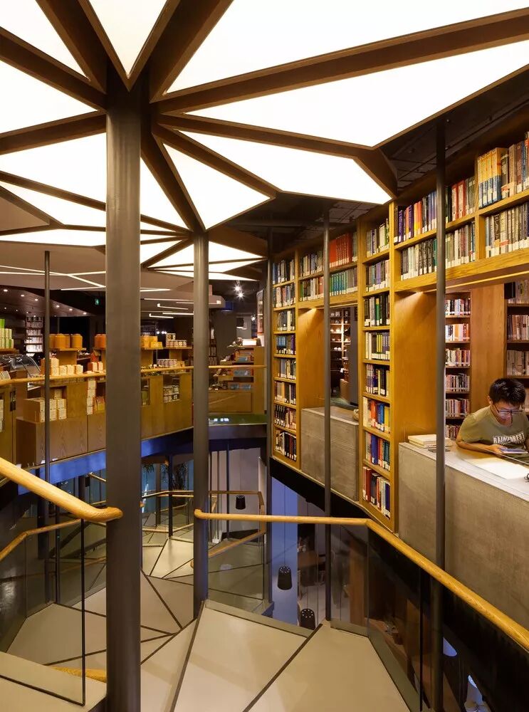 项目位于苏州工业园区苏悦广场三楼。主案设计师认为伟大的书店就应该设计成一个新世界,这个新世界按照钟书阁的布店习惯,分成四个主要功能区和几个细分的辅助功能区。并决定以象征分隔手法作为策略塑造四个功能区,组合成一个完整的世界表述。