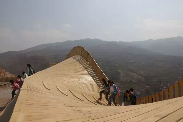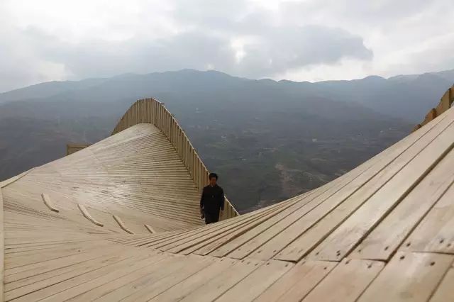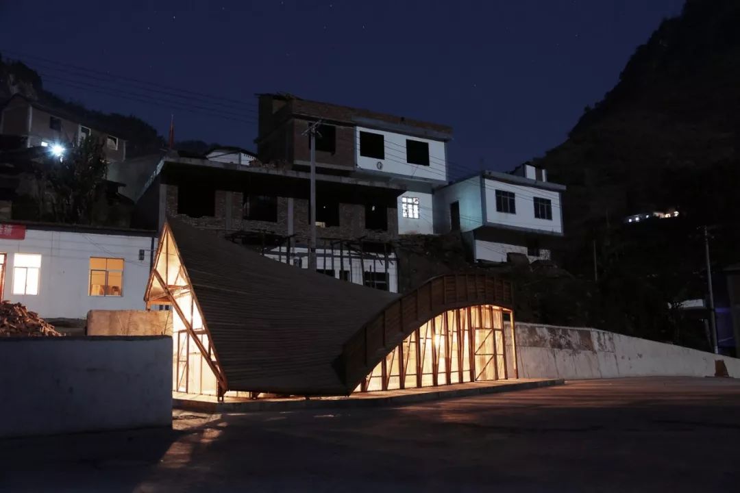 THE PINCH项目是位于中国云南省双河村的图书馆与社区中心。该项目是2012年9月地震后政府规划的灾后重建项目的一部分。图书馆场地背靠一段4米高的挡土墙,设计跨越了这4米的高差,使之成为跨越重建村庄和新建广场的一座桥梁。为了在偏僻山村中凸显其存在,设计在视觉上回应了山谷的空间,以出人意料的双曲面屋顶形状让人们饱览风景。屋顶结构向上攒起尖顶,成为地震和灾后重建行动的纪念碑。