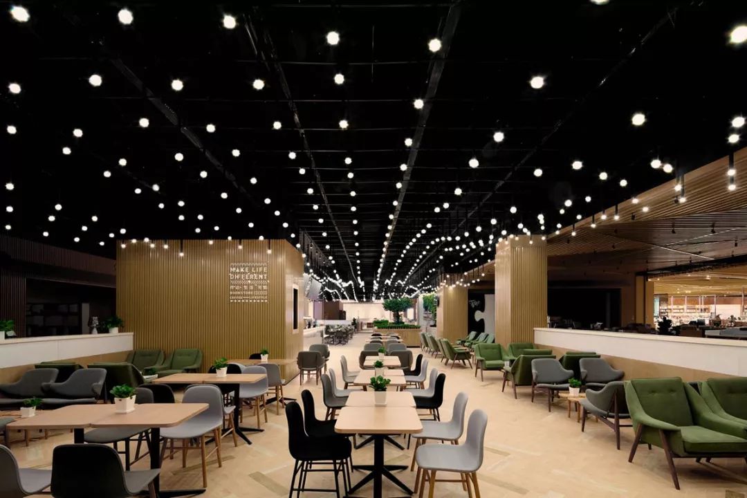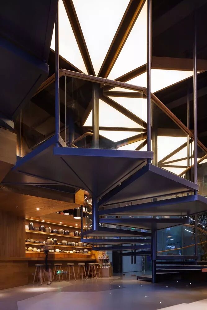 言几又杭州店,位于钱江新城来福士广场内,延续对设计与城市关系的探索,整个空间以简洁的线条勾勒出视觉第一印象,在色彩上以田园木色为基调,呼应山川草木自然温暖的气息,创意天花是以不同的形式对自然及杭州元素进行的视觉化表达。来访者进入空间的仪式感与体验感。