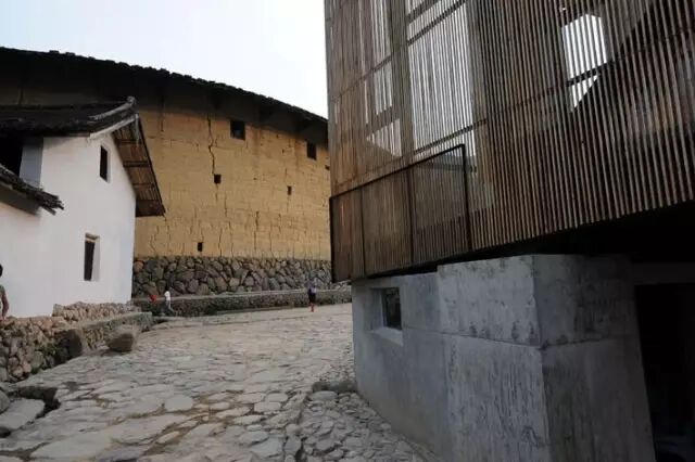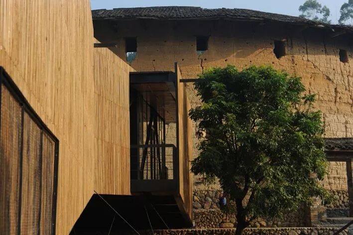 小村落名叫下石村,虽属同一个村,早年却是由两个圆形土楼组成,中间横跨一条溪水,传说旧时两个土楼的家族互为仇敌,遂划渠为界,互不往来。桥上书屋的概念由此而生。土楼之间,溪水之上,桥与学校,舞台与场地,意在连接“现在”,“过去”与“未来”。