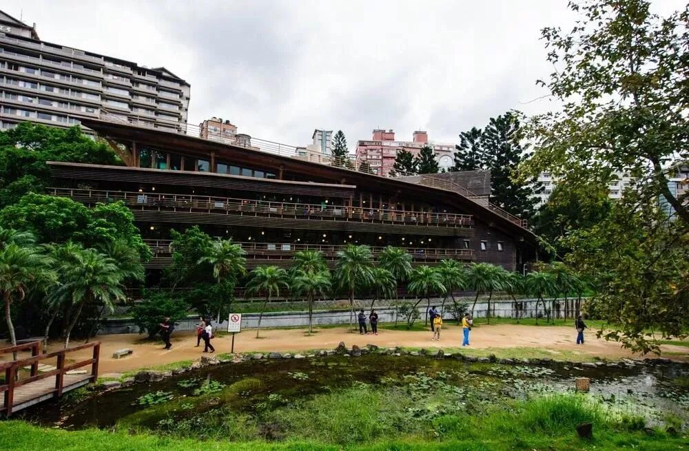 这是一座环保图书馆。北投图书馆地下一层,地上两层,以自然环保的建筑方式建成。
