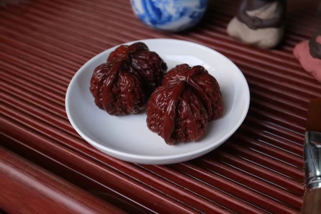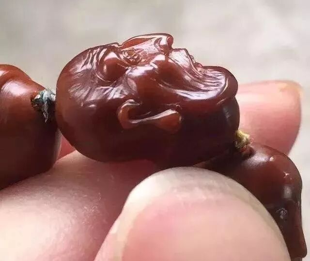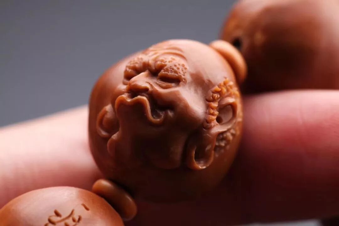 橄榄核是融入雕刻艺术的文玩,细细盘摩精雕的丝丝纹路,岁月流金,每个缝隙里都透着红润的光泽。