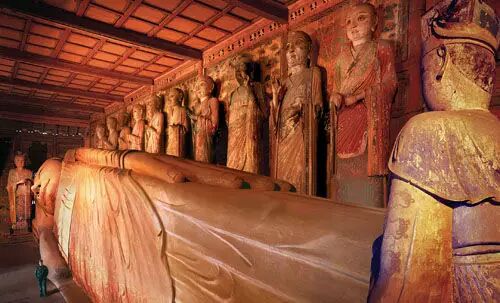 如此推崇张掖的另一个原因,就是在张掖可以看到西夏的国寺:大佛寺。仅存的西夏少数民族宗教殿堂大佛殿、殿内长34.5米的泥塑卧佛和5985卷初刻初印本《大藏经》被誉为大佛寺三绝。