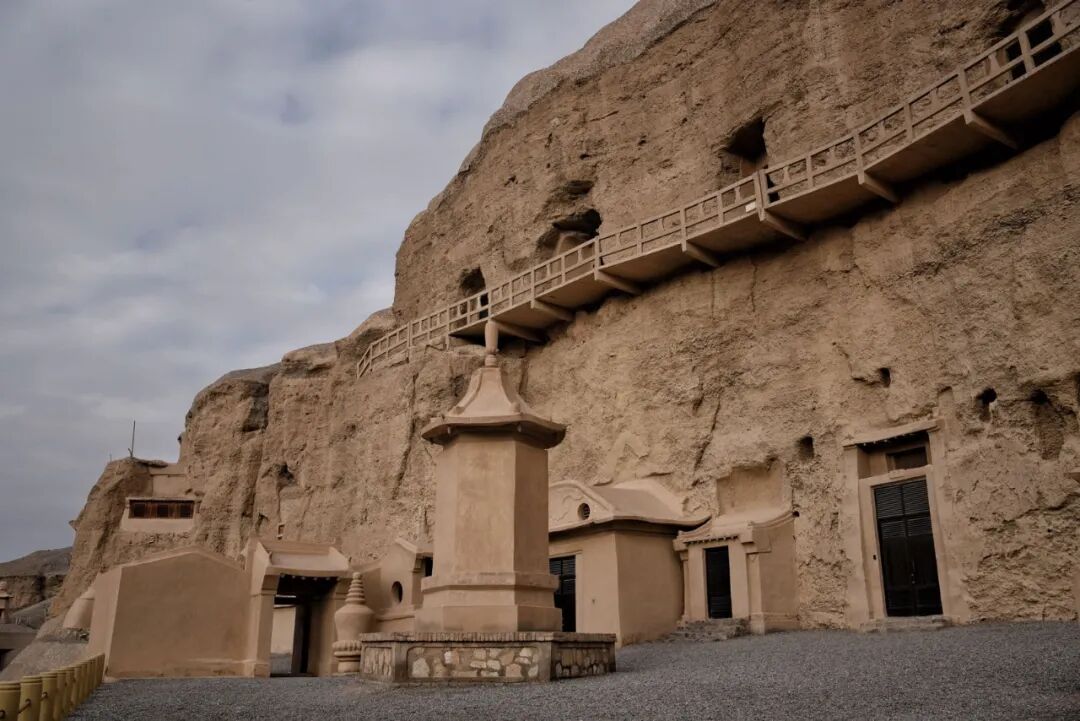 锁阳城遗址,位于酒泉市瓜州县桥子乡南坝村南7公里,亦称“瓜州古城”“苦峪城”,总面积80多万平方米,分内、外两城,是集古城址、古河道、古寺院、古墓葬、古垦区等为一体的古文化遗存地。这里是我国保存最为完好的古代军事防御系统和烽燧信息传递系统。锁阳城像丝绸之路上的一颗明珠,闪耀在东西方文化互鉴交流的史册上。欣赏文殊山石窟艺术后,我们也越来越接近敦煌石窟。敦煌石窟:是莫高窟、西千佛洞、安西榆林窟、东千佛洞、水峡口下洞子石窟、肃北五个庙石窟、一个庙石窟、玉门昌马石窟之总称。榆林窟,位于瓜州县城南榆林河谷两侧的砾石崖壁上,目前完整石窟43个,其中东崖32座,西崖11座,一泓清流流过崖间。窟内共存唐至元代800多年间的彩塑千余身,壁画5650多平方米。