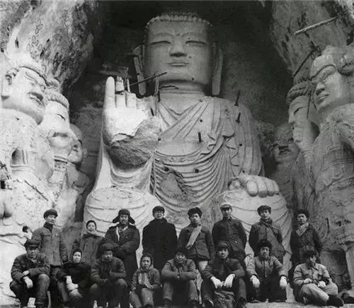 北凉皇帝沮渠蒙逊资助开凿的一座皇家石窟寺,它的主持营造者正是云冈第16-20窟的开凿者——昙曜。宿白先生认为:天梯山石窟所开创的“凉州模式”直接影响到了大同云冈石窟,并且间接影响到了云冈之后的中原各大石窟寺。在这处水库环绕的天梯山石窟,开启我们的河西走廊石窟巡礼。▲著名的考古学家宿白先生1986年在《考古学报》上正式发表了他的观点——《凉州石窟遗迹和 " 凉州模式 "》,他将新疆以东、河西走廊上现存的早期佛教石窟造像艺术手法命名为" 凉州模式 "。1994 年,他亲临天梯山石窟实地考察,确认了天梯山石窟创立了 " 凉州模式 "。▲1959年12月4日,天梯山石窟勘察搬迁工作队部分队员和常书鸿队长在第13窟大佛前合影。前排左起:张学荣、李承仙、孙纪元、何静珍、张鲁章、倪思贤、窦占彪、任步云。后排左起:段文杰、万庚育、翟广炜、常书鸿、丁桂昌、赵之祥、李贞伯、孙儒僩。2月7日