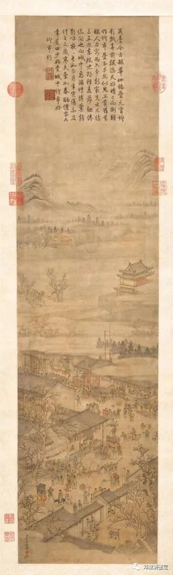 沈源的《清明上河图》,规格为 34.8×1185.9厘米,纸本设色,为各版本《清明上河图》中尺寸最大者。