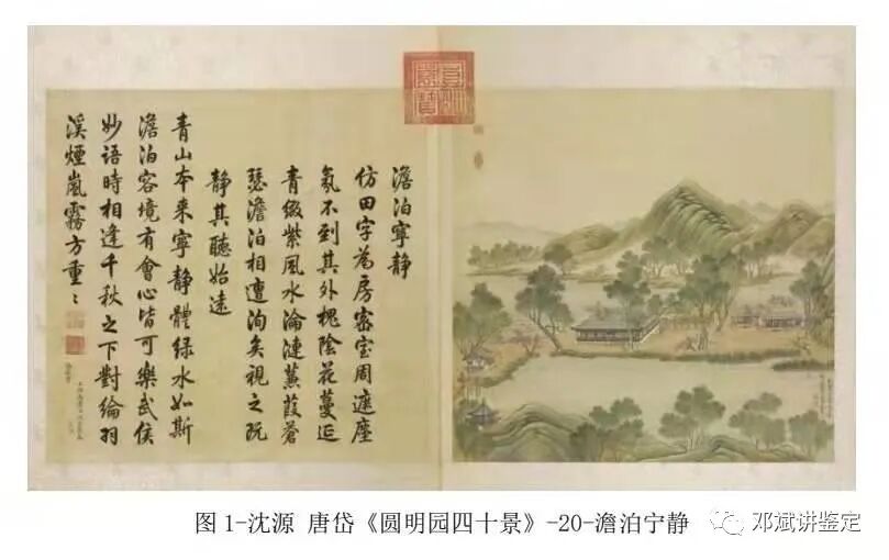 唐岱、沈源合笔《圆明园四十景》(二册),本幅绢本,二册,四十对幅,每幅纵二尺、横四尺,设色画圆明园四十景,款:乾隆九年甲子九月,(臣)唐岱(臣)沈源恭画。钤印二,臣沈源、恭画。...