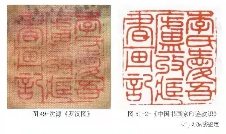图47-沈源《罗汉图》印文 图48-《中国书画家印鉴款识》