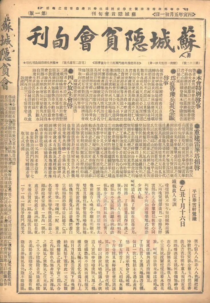 ▲《苏城隐贫会旬刊》刊载《重建雷峰塔捐启》(第32期)
